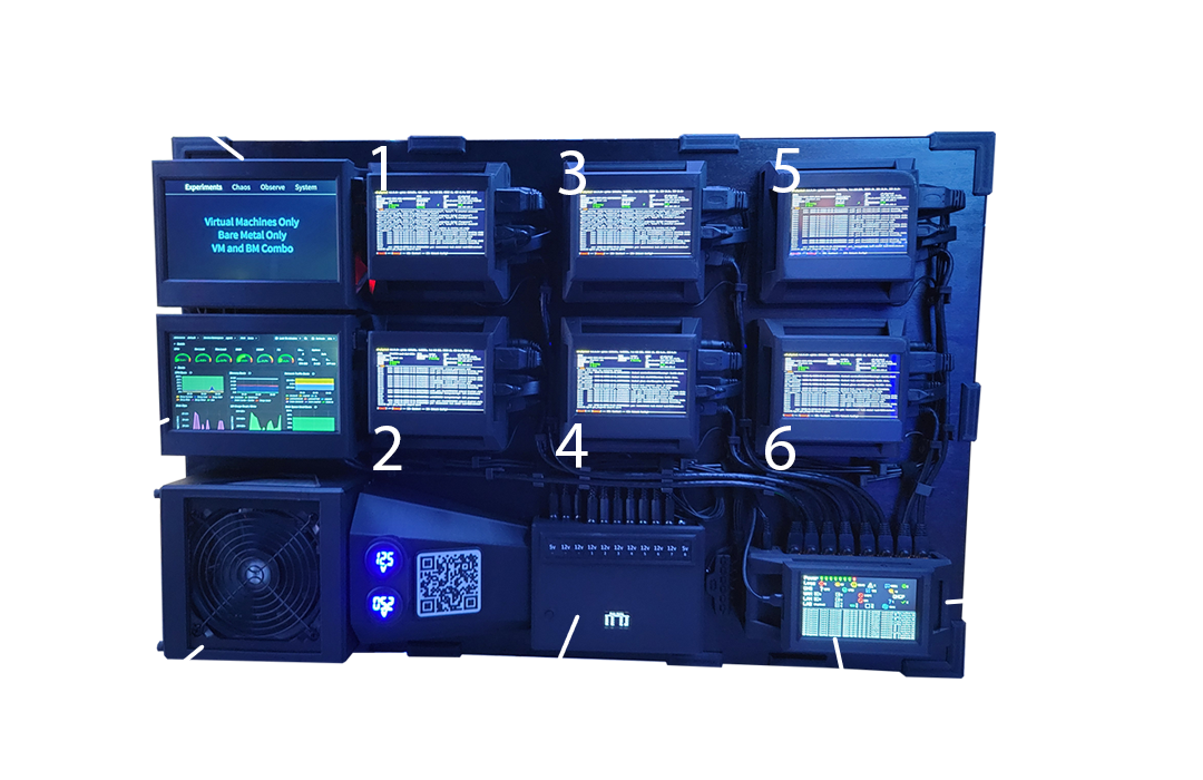 There are three types of labs available. The Virtual Machine lab will start hypervisors on all six of the lab nodes and launch Talos on each. The Bare Metal lab will launch Talos natively on all six nodes. The Hybrid lab will launch Talos for the control plane on the top three nodes and hypervisors for the workers on the other three nodes.
